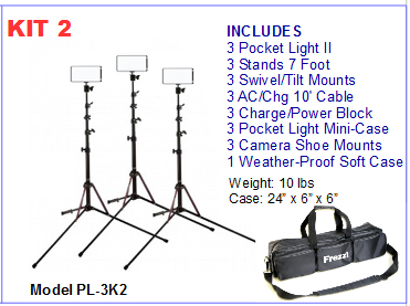 everything in Kit 1 has and an extra stand to make a full 3 point light kit.